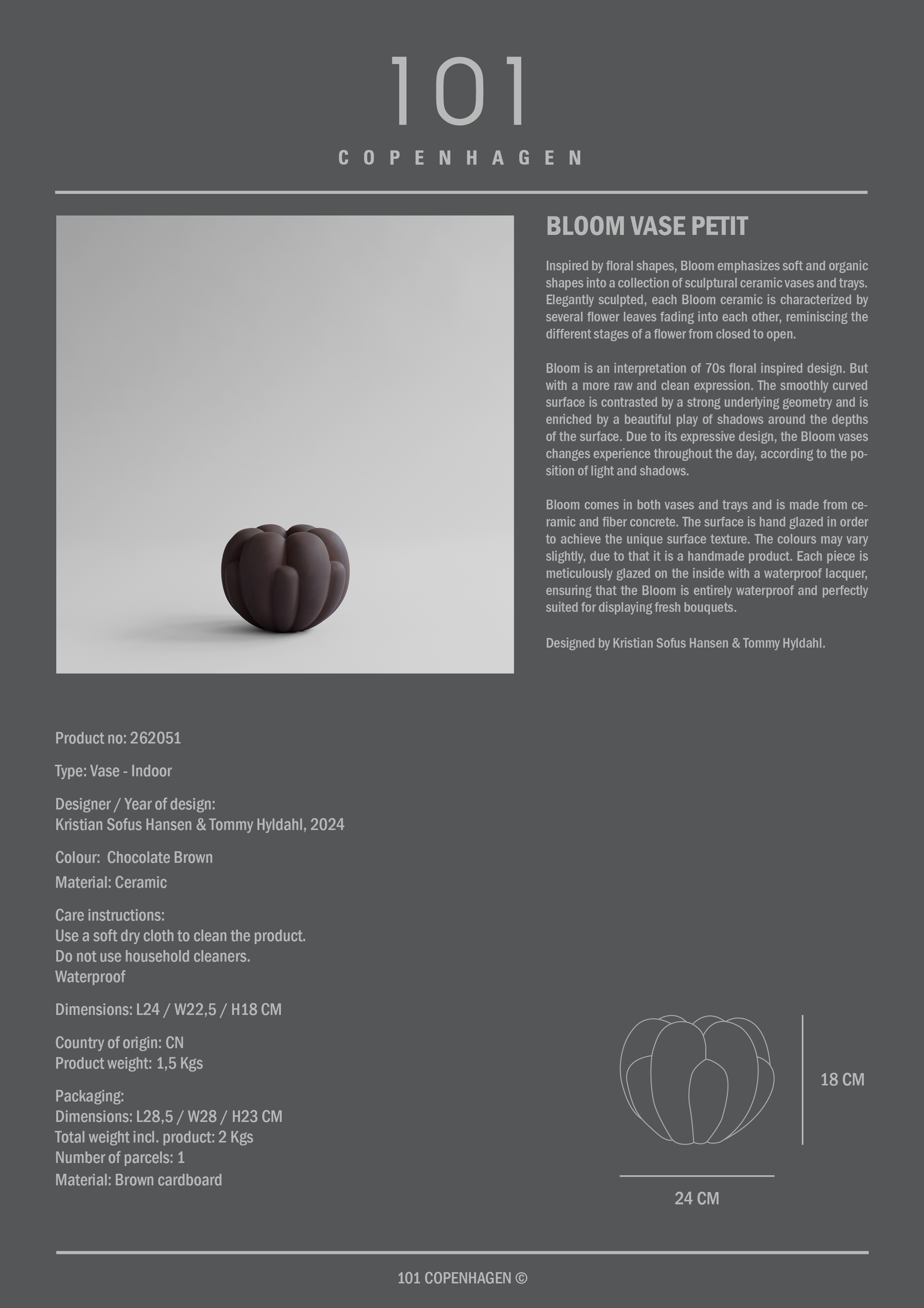 101 Copenhagen Bloom Vase Liten Sjokoladebrun