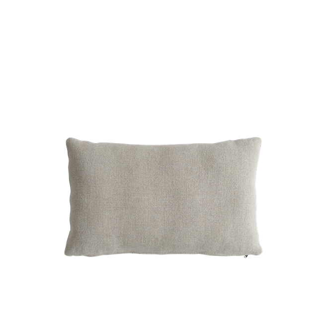 Ryggputen myker opp Brutus-loungestolene, og gir både komfort og kontrast til deres særegne arkitektoniske form. Designet for å utfylle fiberbetongen og den naturlige eiken, gjør den stolen mer innbydende og taktil. Puten er tilgjengelig i rå lin eller eksklusiv merinoull, noe som fremhever både stolens visuelle og sensoriske kvaliteter. Rå lin med en subtil tekstur fremhever treets og fiberbetongens naturlige skjønnhet, mens merinoull i varm Sandshell med en myk, matt glans gir luksuriøs komfort og en pleiende overflate som blir mykere over tid. Puten skaper en balanse mellom struktur og mykhet, noe som gjør Brutus-loungestolen både komfortabel og skulpturell. Designet av Kristian Sofus Hansen og Tommy Hyldahl.
