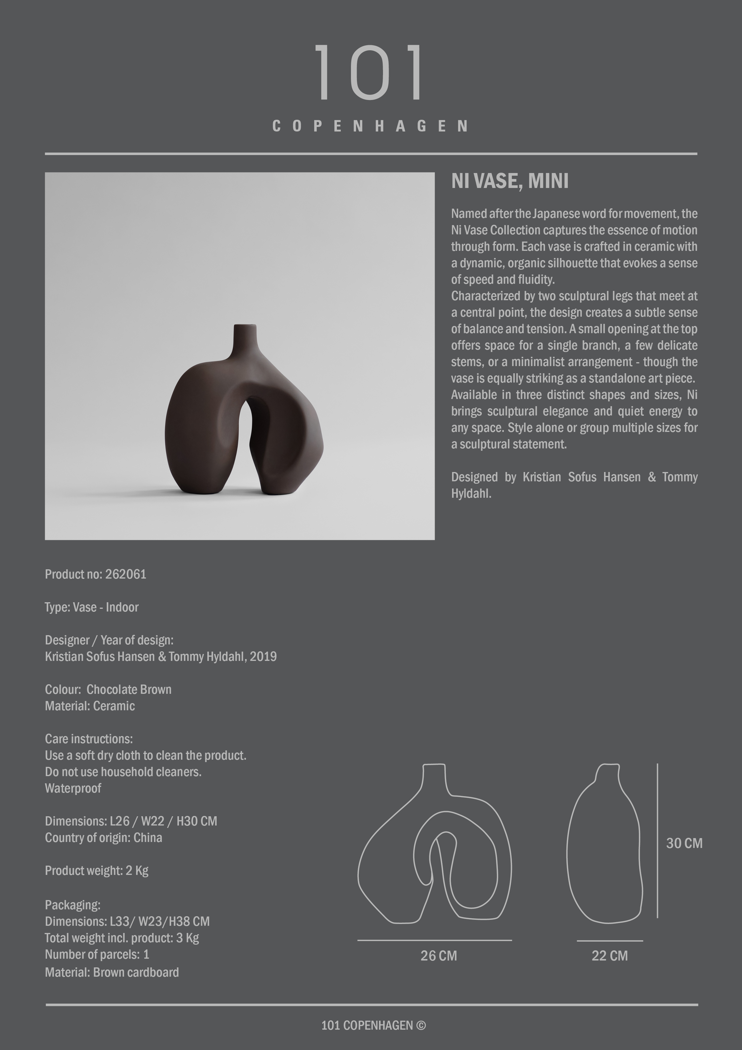 101 Copenhagen Ni Vase Mini Sjokoladebrun