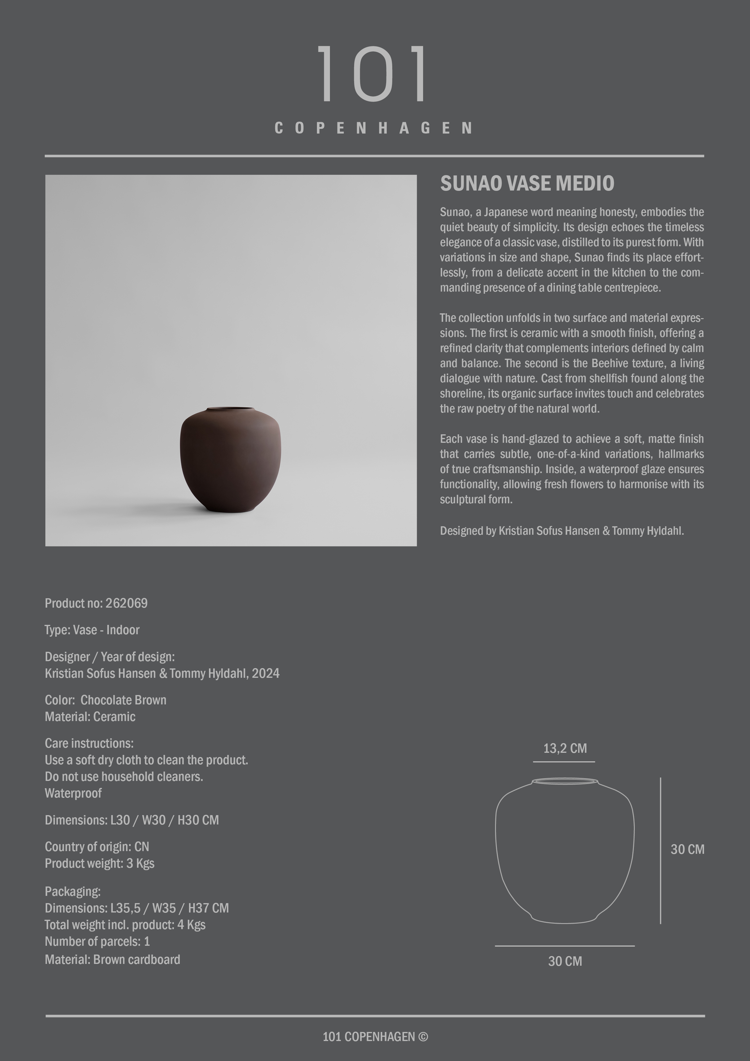 101 Copenhagen Sunao Vase Medium Sjokoladebrun