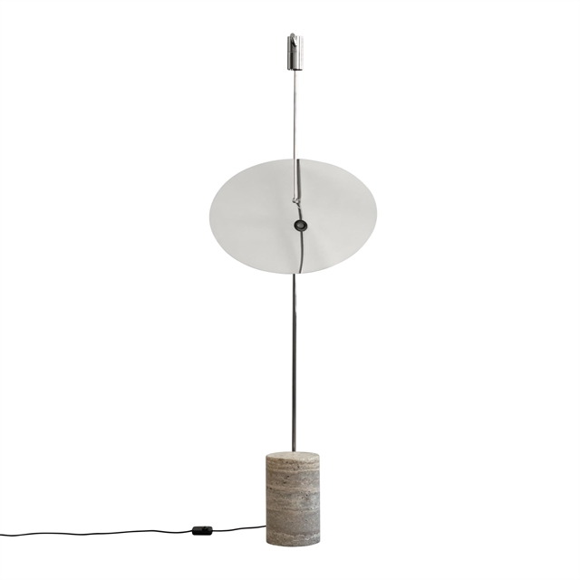 Moon er et skulpturelt belysningsobjekt der balanse og geometri møtes i et poetisk uttrykk. Inspirert av himmellegemenes rolige baner, svever de runde formene lett i rommet og skaper en atmosfære av ro og ettertanke. To diskrete lyskilder plassert på en slank arm tilfører dybde og myk belysning, mens den store skjerm kaster lys fra begge sider og forsterker følelsen av rom og bevegelse. Den solide base i naturstein gir designet tyngde og stabilitet og danner en fin kontrast til lampens ellers lette uttrykk. Moon fungerer både som stemningsskaper og som et særegent designelement, og tilfører karakter, varme og en nesten meditativ ro til interiøret.
