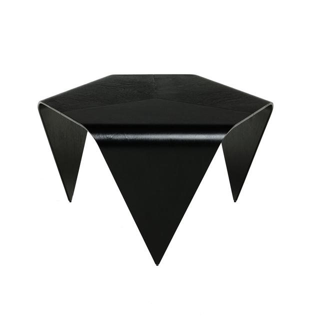 Trienna-sofabordet fra Artek er bygget rundt en karakteristisk, trekantet form, hvor tre støpte elementer møtes og skaper en dynamisk, men rolig helhet, noe som gir bordet et spesielt grafisk uttrykk. Den lave høyde og den lette konstruksjonen gjør det egnet som et sentralt element i stuen, hvor det fungerer både som en praktisk overflate og som et visuelt interessant element som tilfører variasjon til interiøret.