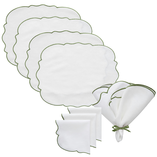 Decotique Gia tesett 4 plassbrikker + 4 servietter Hvit/ Grønn kr 599 Live prismatch På lager, levering innen 1-2 dager Legg i kurvUtforsk mer produktinformasjon Ingen importavgift – alt inkludert! (kun NO) Gratis frakt ved kjøp over kr 1500 Ekskluderer store møbler og andre utvalgte produkter Autorisert distributør