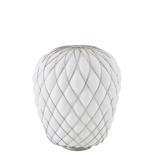 Pinecone-serien fra FontanaArte er et unikt eksempel på italiensk håndverk og tidløs design, der teknologi og estetikk smelter sammen i perfekt balanse. Lampen består av et munnblåst glass som formes direkte inne i et stålgitter under produksjonen – en prosess som skaper den karakteristiske strukturen og et levende spill mellom lys og materiale. Lyset diffunderer mykt gjennom glasset og sprer en varm og innbydende atmosfære, mens metallgitteret gir lampen et moderne, arkitektonisk uttrykk. Pinecone er både et funksjonelt belysningsobjekt og en skulpturell dekorasjon som tilfører personlighet og karakter til rommet, enten den brukes som en taklampe over spisebordet eller som en stemningsfull bordlampe i stuen eller på soverommet. Serien representerer FontanaArtes evne til å kombinere tradisjonelt håndverk med et moderne formspråk på en måte som føles både eksklusiv og tidløs.