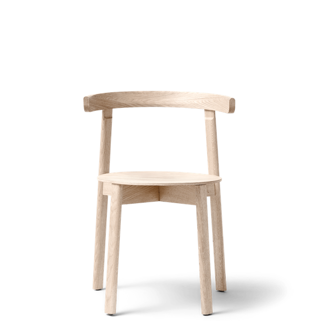 Lunar Chair er en allsidig spisestuestol i tre som kombinerer funksjonalitet, estetikk og komfort. Den karakteristiske runde ryggstøtten og armlenene er laget av ett enkelt stykke massivt tre, noe som gir optimal støtte for både albuer og korsrygg, samtidig som det muliggjør flere sittestillinger. Tresetet hviler på en kryssformet base, noe som sikrer stabilitet og et lett uttrykk. Det buede setet gir en komfortabel sitteopplevelse og en distinkt profil. Stolen kan stables og henges på kanten av bordet, noe som gir praktiske funksjoner til det elegante og harmoniske designet. Med sin slitesterke konstruksjon og stilige utseende er Lunar Chair ideell for en rekke bruksområder, inkludert hoteller, kontorer og hjemme.