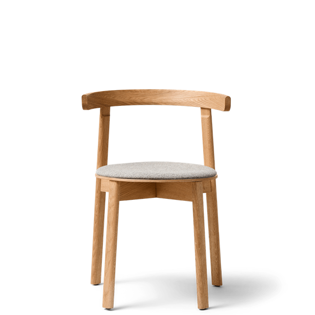 Lunar Chair er en allsidig spisestuestol i tre som kombinerer funksjonalitet, estetikk og komfort. Den karakteristiske runde ryggstøtten og armlenene er laget av ett enkelt stykke massivt tre, noe som gir optimal støtte for både albuer og korsrygg, samtidig som det muliggjør flere sittestillinger. Tresetet hviler på en kryssformet base, noe som sikrer stabilitet og et lett uttrykk. Det buede setet gir en komfortabel sitteopplevelse og en distinkt profil. Stolen kan stables og henges på kanten av bordet, noe som gir praktiske funksjoner til det elegante og harmoniske designet. Med sin slitesterke konstruksjon og stilige utseende er Lunar Chair ideell for en rekke bruksområder, inkludert hoteller, kontorer og hjemme.