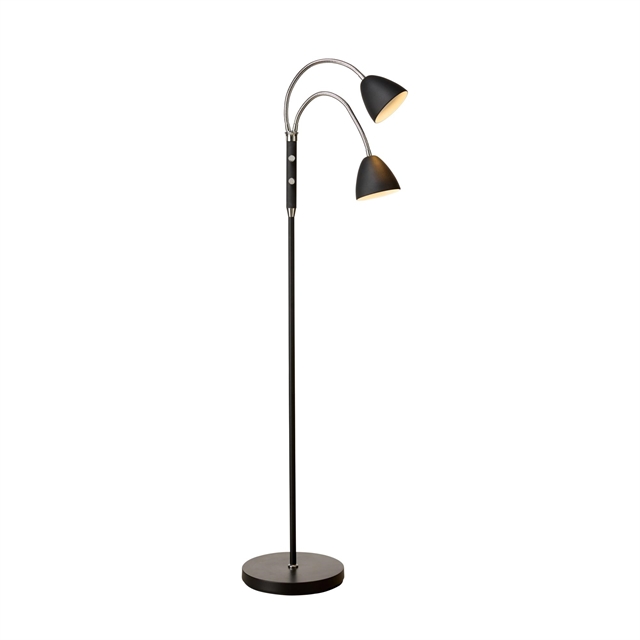 Gulvlampe fra Halo Design, designet av Michael Waltersdorff, kombinerer enkel eleganse med funksjonell belysning. Den fleksible fleksarmen gjør det mulig å justere lysretningen, mens GU10- sokkelen tillater LED-lyskilder opptil 35 watt. Lampen har innebygd dimmer, svartlakkert metallfot og fleksarm i krom. Med en høyde på 140 cm og et lesehode på 10 cm passer den til både stue, kontor eller soverom. Lampen leveres med en 5 watts LED-pære klar til bruk.