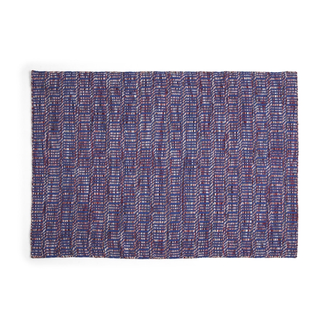 HAY Radio-teppet er et moderne, grafisk teppe som kombinerer farge, mønster og struktur til en levende helhet. Designet består av et dynamisk stripete mønster i røde og blå toner, som skaper bevegelse og energi i rommet uten å være overveldende. Teppet er vevd i en slitesterk blanding av ull og bomull, som gir både komfort og holdbarhet. Radio fungerer perfekt som et slående designelement i stuen, under spisebordet eller i gangen, hvor det kan binde farger og former sammen. Håndverket og den naturlige teksturen i materialene gjør det til et ærlig og karakterfullt produkt som tilfører varme og personlighet til moderne interiør.