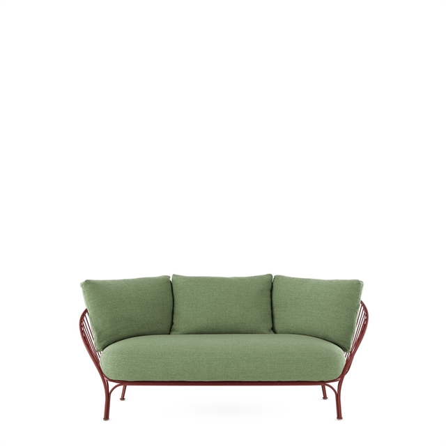 HIRAY-sofaen fra Kartell har et lett og grafisk uttrykk , og kombinerer en slank metallstruktur med myke, innbydende puter, noe som skaper en interessant kontrast mellom det industrielle og det komfortable. Designet fremstår luftig og transparent, noe som gjør sofaen visuelt lett i rommet, mens putene sikrer en komfortabel sitteopplevelse. Sofaen er egnet for både innendørs og utendørs bruk, der de slitesterke materialene gjør den motstandsdyktig mot daglig bruk og skiftende miljøer. Et moderne loungemøbel som kombinerer komfort, funksjon og et særegent designspråk.