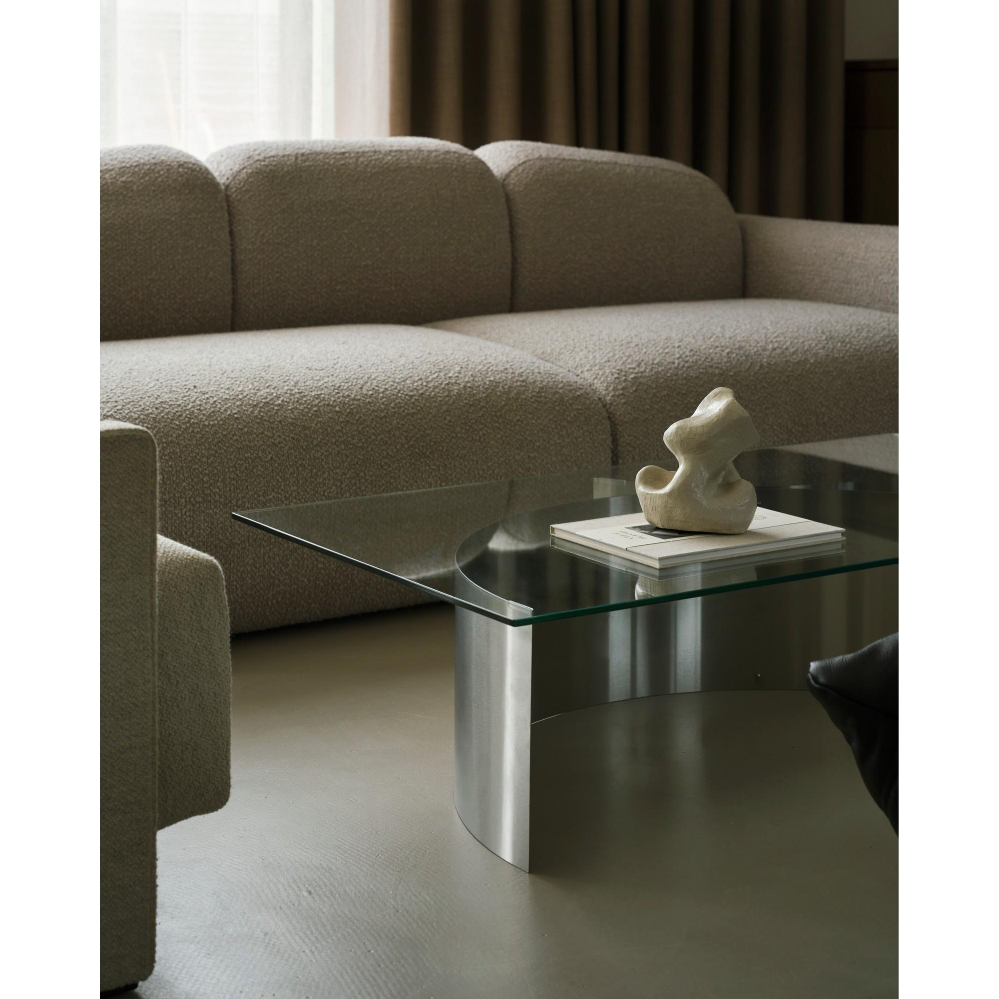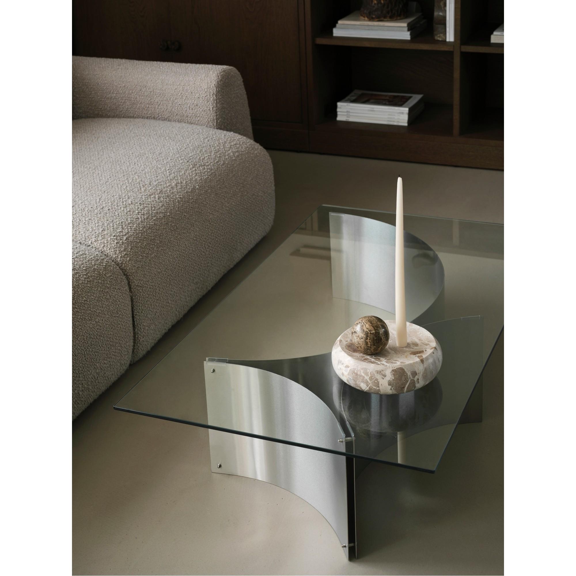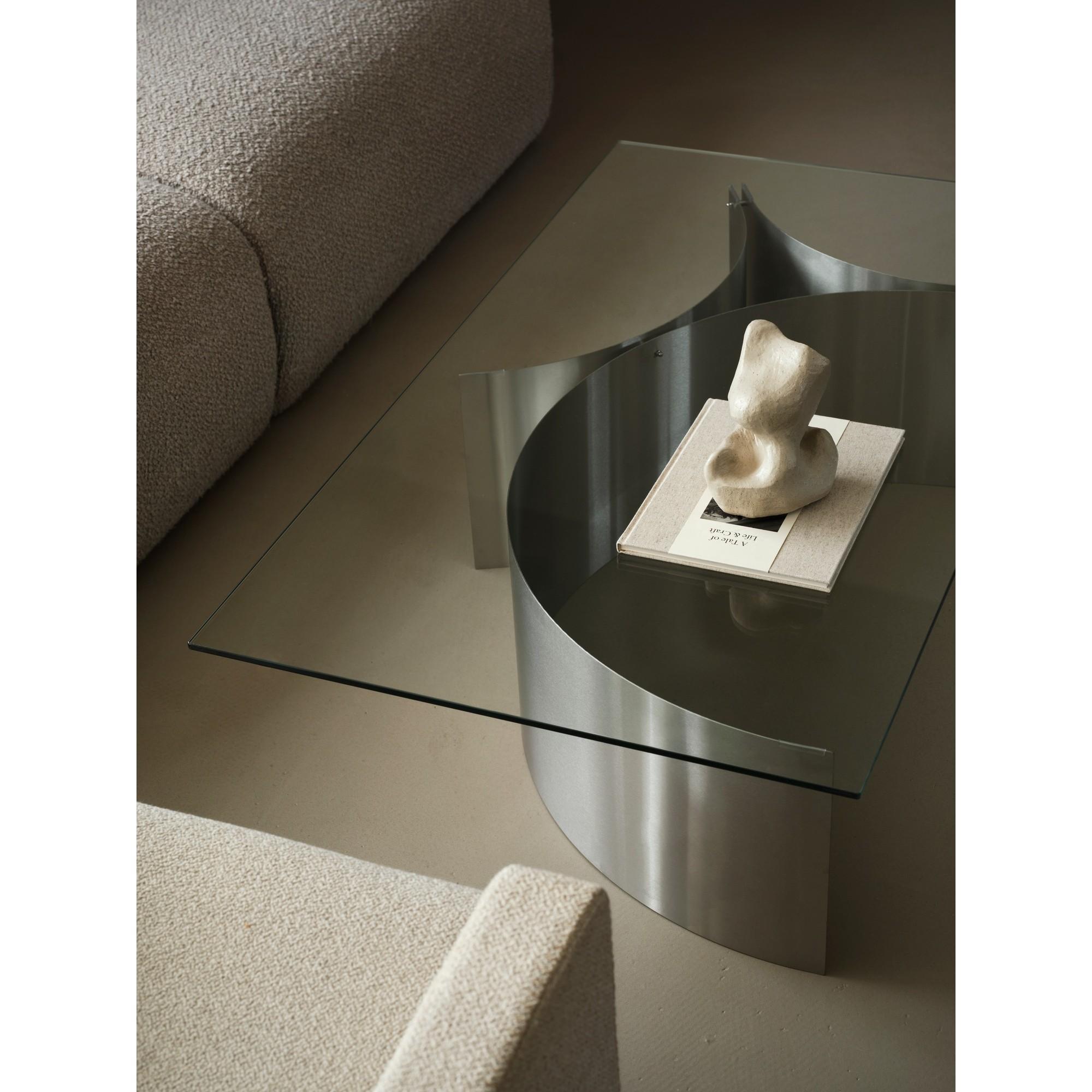 Curated Coffee Table kombinerer en skulpturell stålstruktur med en transparent glassplate og presenterer et klart og presist formspråk. Designet balanserer struktur og letthet, der konstruksjonen tydelig fremstår som en integrert del av uttrykket.