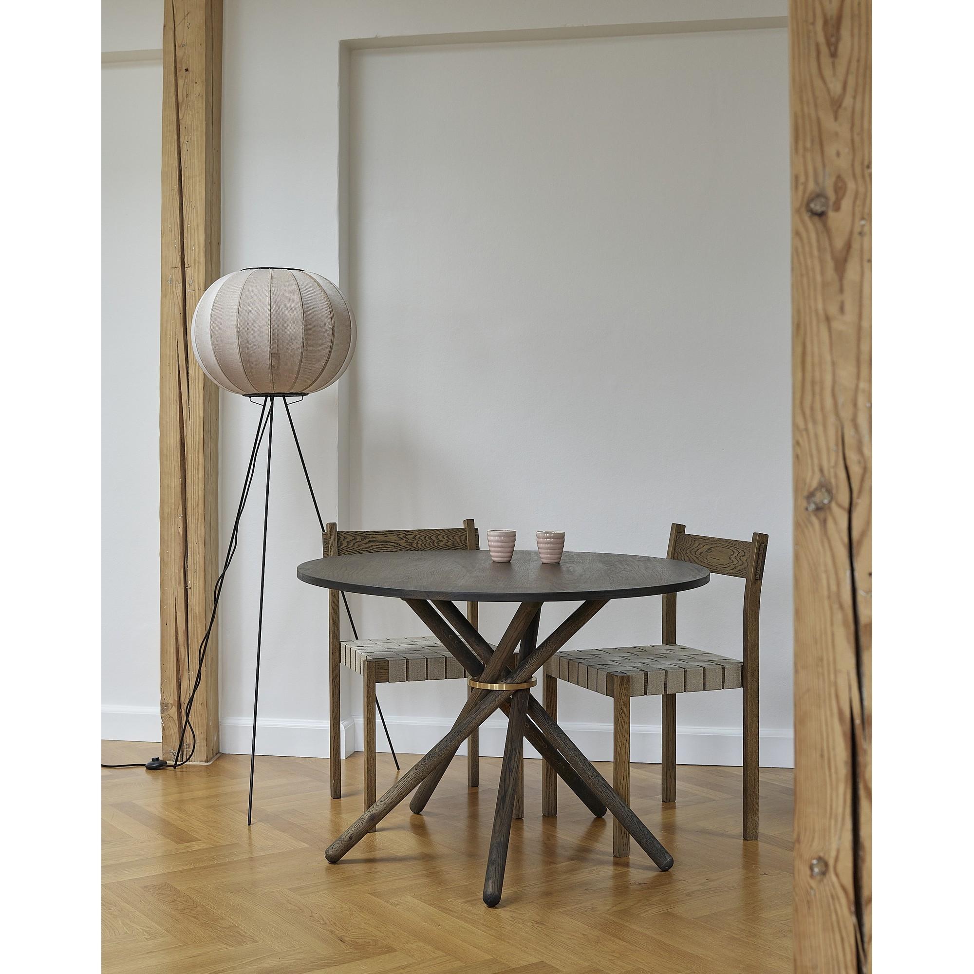KNIT-WIT gulvlampen ble skapt av ISKOS-BERLIN for Made By Hand i 2017 og stammer fra en vakker kombinasjon av inspirasjon fra solens lyskule og den klassiske rispapirlampen. Det strikkede materialet skaper et 360 graders varmt og koselig lys, noe som gir lampen et helt spesielt uttrykk.