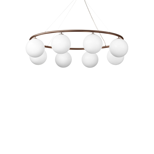 Nuura Miira 8 Oval er en elegant lysekrone som kombinerer nordisk enkelhet med en følelse av luksus og balanse. Serien kjennetegnes av sin ovale form, hvor de munnblåste glasskuppelene svever lett rundt den sentrale rammen og sprer et mykt, atmosfærisk lys i rommet. Hver detalj er nøye gjennomtenkt – fra de harmoniske proporsjonene til det håndverksmessige uttrykk, noe som gjør lampen både tidløs og moderne. Miira 8 Oval fungerer som et naturlig midtpunkt over spisebordet eller i stuen, hvor den tilfører en følelse av ro, varme og skulpturell eleganse. Serien forener funksjon og estetikk på den vakreste måten og gjenspeiler Nuuras visjon om å spre lys og glede gjennom nordisk design.