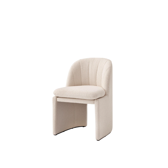Loafer SC24 er en spisestuestol som kombinerer heldekkende komfort med skulpturell enkelhet, skapt av Space Copenhagen for &Tradition. Designet stammer fra ønsket om å skape en stol der du føler deg helt hjemme – selv i offentlige rom. Den myke kurven på ryggen og armlenene omfavner kroppen, mens det faste setet gir støtte og stabilitet. Loafer SC24 har en fyldig, men elegant tilstedeværelse, og fungerer perfekt ved spisebord, møtebord eller på restauranter og hoteller, der komfort og uttrykk må spille tett sammen. En moderne klassiker med fokus på ro, materialitet og tidløs design.