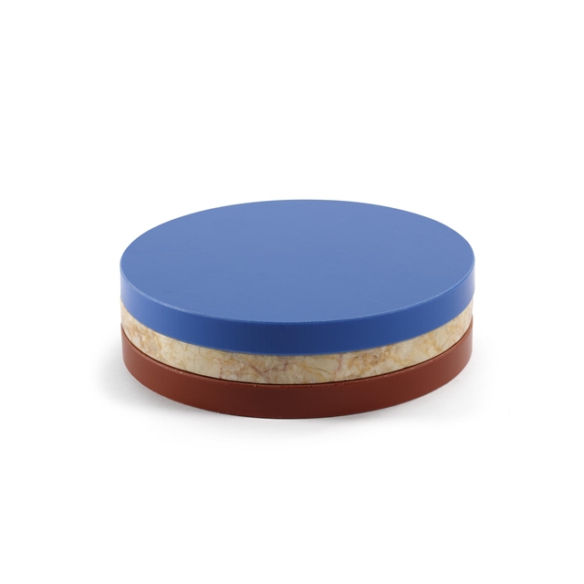 Valerie Objects verdsetter bærekraft og har derfor valgt å aktivere sine overskuddsmaterialer. Dette har resultert i en nyutgivelse av Five Circles, den ikoniske designklassikeren fra Muller Van Severen, bestående av fem fargerike, sirkulære brett. Der den originale Five & Three Circles fra 2017 inkluderte både marmor- og polyetylenbrett, er denne nye versjonen produsert utelukkende med polyetylen fra eksisterende lager.