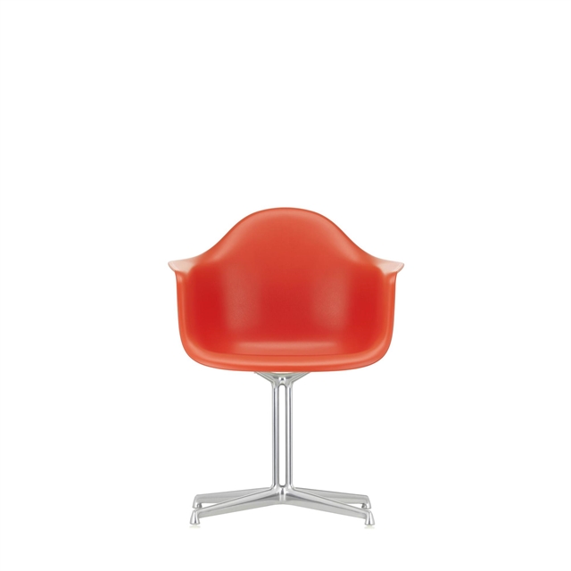 Eames Plastic DAL RE er en moderne versjon av den ikoniske lenestolen designet av Charles og Ray Eames, nå laget av resirkulert plast som en del av Vitras bærekraftsinitiativer. Det organiske skallet med integrerte armlener gir høy sittekomfort, mens den elegante metallrammen med fire ben fremhever stolens lette og tidløse uttrykk. Med sitt funksjonelle design og ansvarlige materialvalg er DAL RE ideell for både spisebord, møterom og kreative arbeidsområder – et ikonisk valg med tanke på fremtiden.