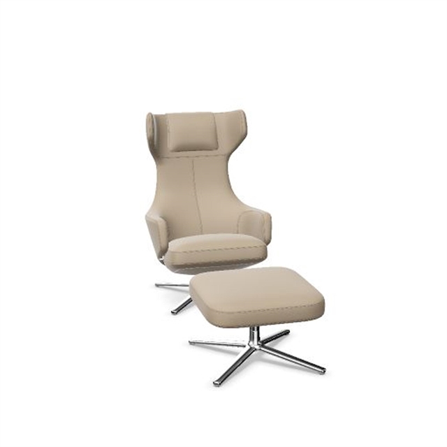 Vitra Grand Repos lenestol med fotskammel mørk Sand/ Krom